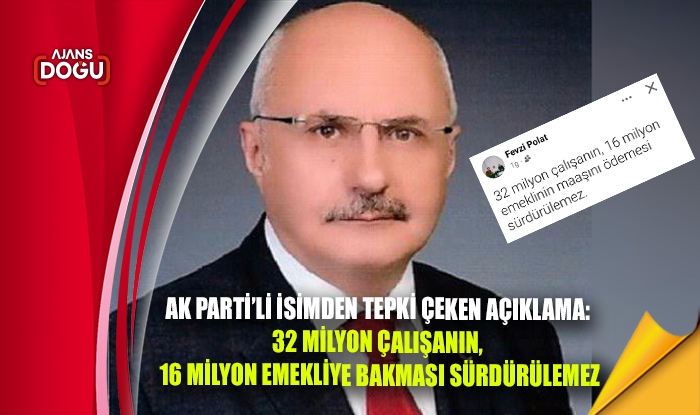 Ak Parti Merkez Karar ve Yönetim Kurulu (MKYK) üyesi Fevzi Polat’ın sosyal medyada “32 milyon çalışanın, 16 milyon emekliye bakması sürdürülemez” paylaşımı tepkilere neden oldu. polat, paylaşımını sildi.