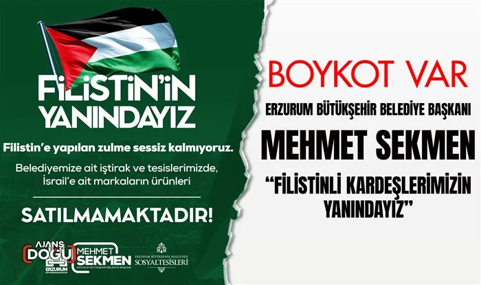Siyonist İsrail’lin Gazze’ye yaptığı insanlık dışı soykırımın yankıları sürerken, Erzurum Büyükşehir Belediye Başkanı Mehmet Sekmen’den de boykot geldi.