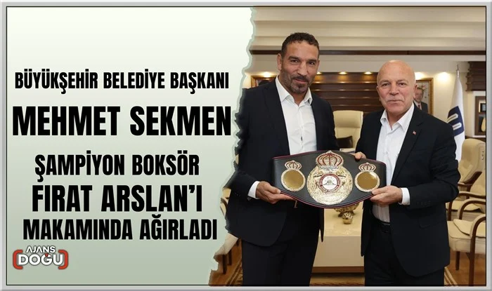 Başkan Sekmen’de Fırat Arslan’ı tebrik ederek, “Ülkemizin ilk ve tek Dünya Şampiyonu Profesyonel Boksörümüz Fırat Arslan’ı belediyemizde ağırladık. Spor alanında hayata geçen projelerimizden övgüyle bahseden boksörümüze nazik ziyaretleri ve samimi sohbetleri için teşekkür ediyorum.” diye konuştu