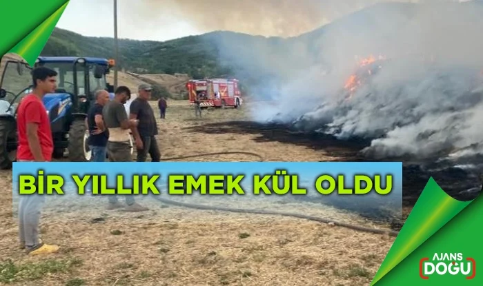 Meydana gelen yangında Mehmet Taştan’ın hayvanları için yaz aylarında büyük emeklerle biçip topladığı 4 bin balya ot küle döndü.