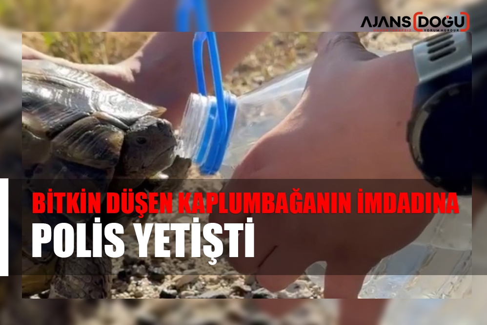 Erzurum polisi görev esnasında gördüğü ve susuz kalan kaplumbağaya eliyle sus içirdi.