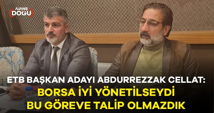AJANS DOĞU – 5 Kasımda yapılacak olan Erzurum Ticaret Borsası seçimlerinde Başkanlık için aday olan başarılı iş insanı Abdurrezzak Cellat ve Meclis üyesi adayı Mesut Demirci, gazetecilerle bir araya geldi. Seçimler öncesinde önemli konulara dikkat çeken Cellat, “ Borsa iyi yönetilmiyor, afaki vaatlerle, bu başarısızlık kapatılmaya çalışılıyor.” dedi.