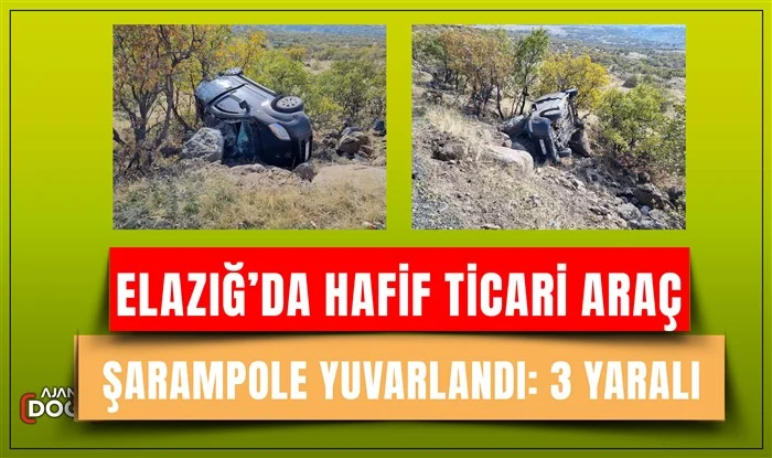 Elazığ’da sürücüsünün direksiyon hakimiyetini kaybettiği hafif ticari araç şarampole yuvarlandı. Kazada 3 kişi yaralandı.