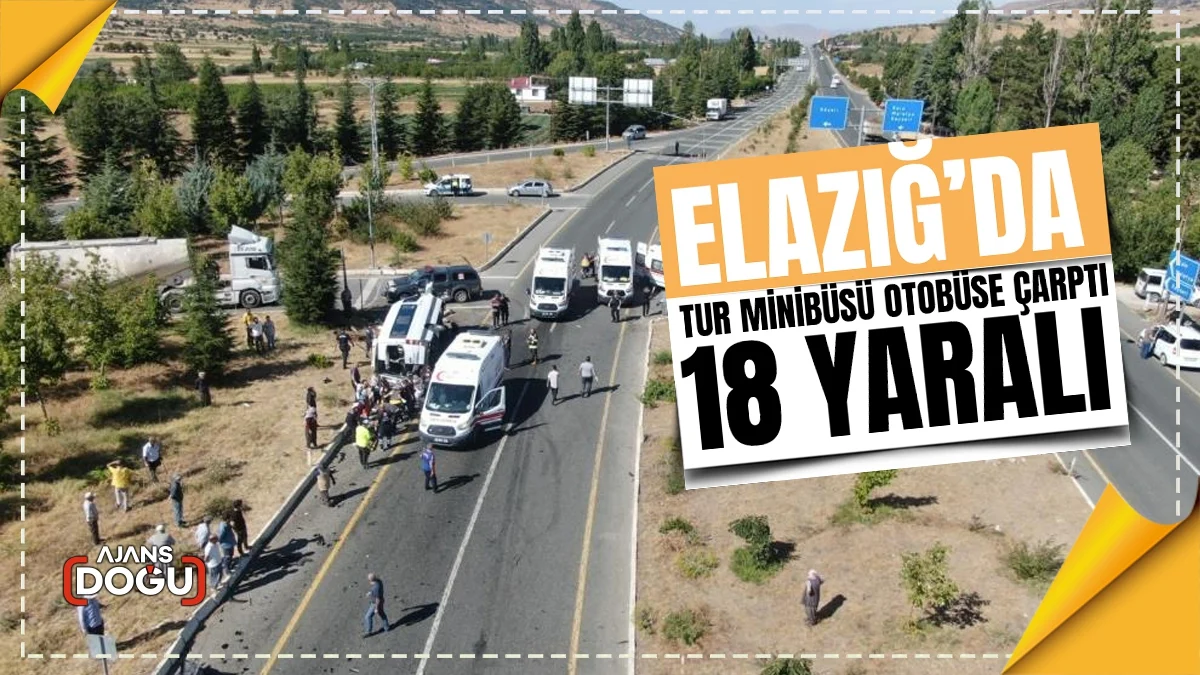 Elazığ’da tur minibüsü, otobüse çarptı. Kazada ilk belirlemelere göre 18 kişi yaralandı.