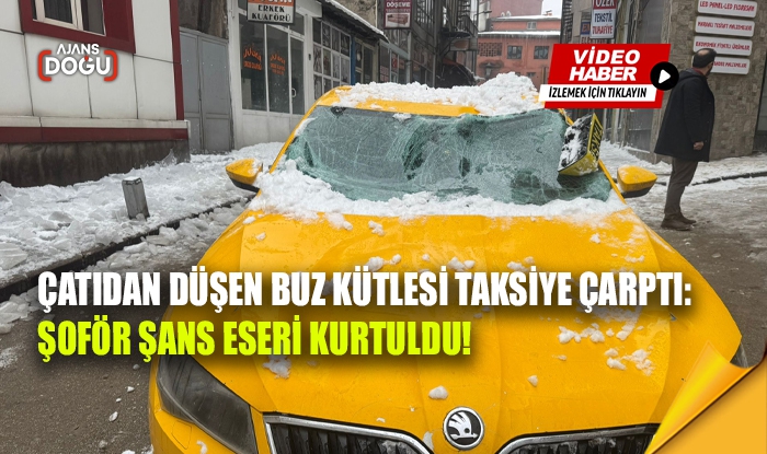 AJANS DOĞU / ÖZEL HABER – Erzurum’un Yakutiye ilçesinde facianın eşiğinden dönüldü. Seyir halindeki ticari taksinin üzerine, bir binanın çatısından kopan dev buz kütlesi düştü. Araçta büyük çapta maddi hasar meydana gelirken, taksinin şoförü Mükerrem Çelebioğlu şans eseri yara almadan kurtuldu.