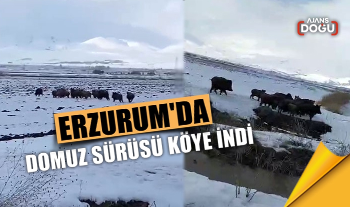 Erzurum’da aç kalan domuz sürüsü köye indi