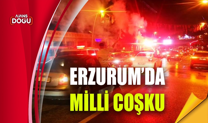 AJANS DOĞU – Maçın bitiş düdüğü ile birlikte sokaklara akın eden Erzurumlular araç konvoyu ve Türk bayrakları ile galibiyeti doyasıya kutladı. Havuzbaşı kent meydanında milli takımın çeyrek finale yükselmesini kutlayan Erzurumlular geç saatlere kadar büyük bir coşku yaşadı.