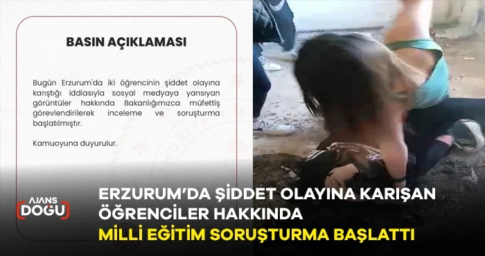 Öte yandan, olayla ilgili Milli Eğitim Bakanlığı tarafından soruşturma başlatıldı. Konuya ilişkin yapılan açıklamada, “Erzurum’da iki öğrencinin şiddet olayına karıştığı iddiasıyla sosyal medyaya yansıyan görüntüler hakkında Bakanlığımızca müfettiş görevlendirilerek inceleme ve soruşturma başlatılmıştır” denildi.