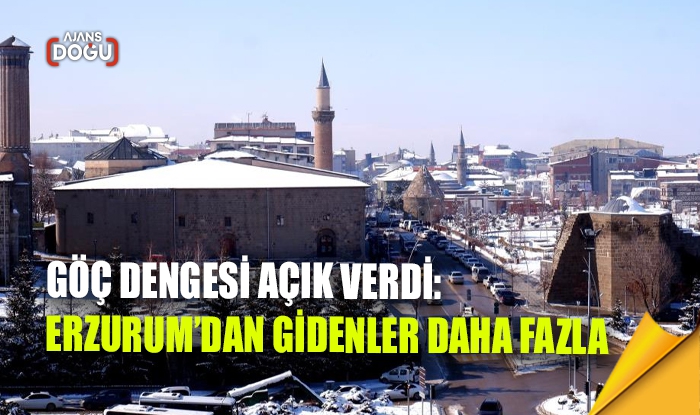 Erzurum son verilere göre 26 bin 629 göç aldı. Erzurum’un göç alma nedenlerine bakıldığında; 3 bin 303 tayin veya iş değişikliği, bin 518 kişi işe başlamak veya iş bulmak, 7 bin 855 kişi eğitim, bin 230 kişi ailevi nedenlerden, 3 bin 66 kişi daha iyi konut ve yaşam şartları, 5 bin 466 kişi aile bağımlı, bin 259 kişi geri dönme sebebi, 157 kişi sağlık veya bakım, 612 kişi ev alınması, 82 kişi emeklilik, 531 kişi diğer ve 3 bin 450 kişi bilinmeyen nedenlerden Erzurum’a göç etti.
