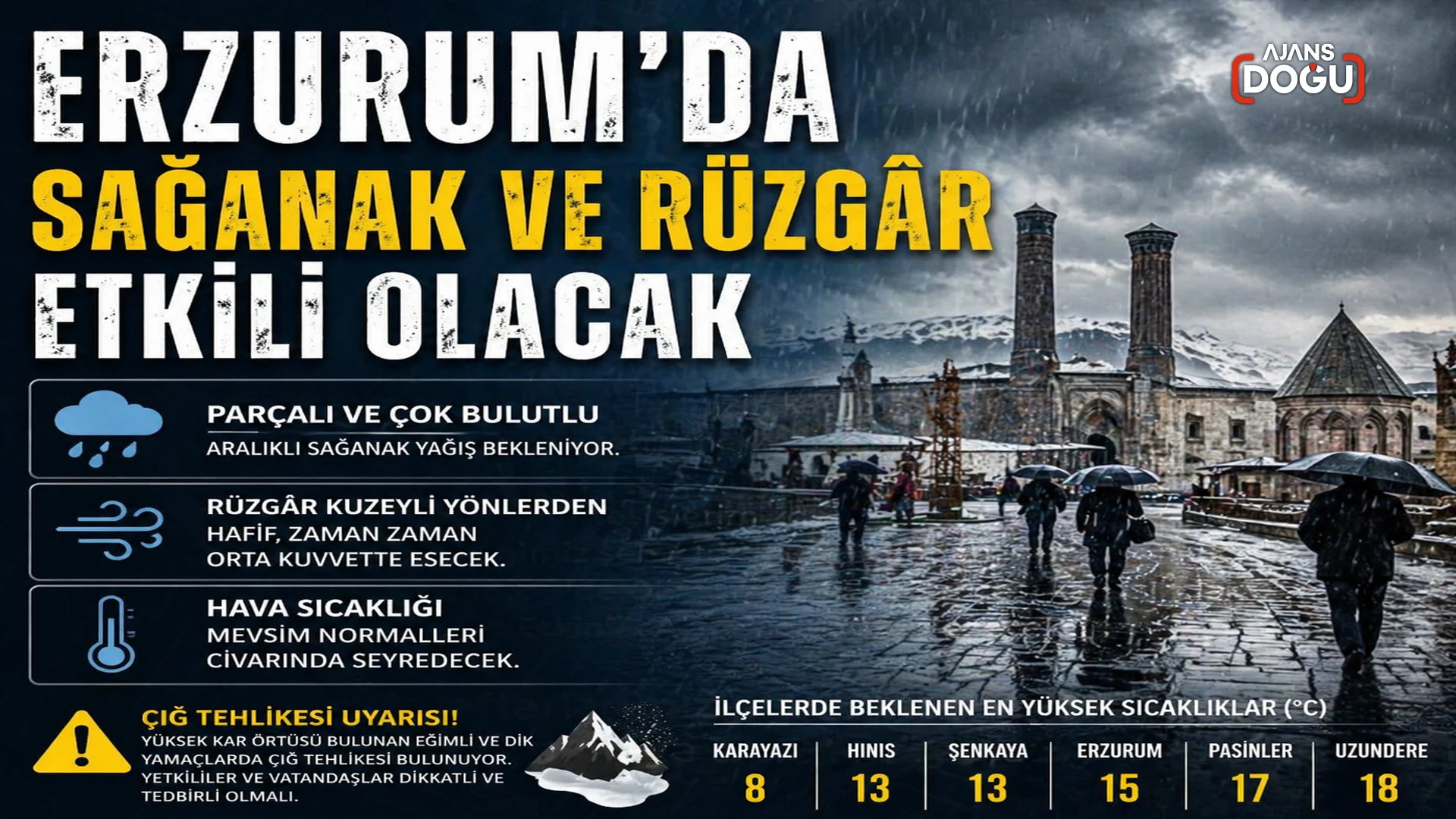 Erzurum’da yağmur ve rüzgâr bekleniyor
