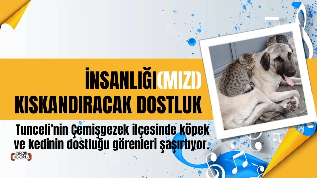 Tunceli’nin Çemişgezek ilçesinde köpek ve kedinin dostluğu görenleri şaşırtıyor.