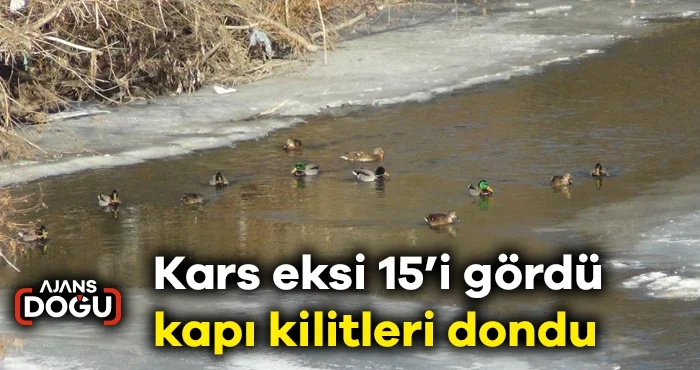 AJANS DOĞU – Kars eksi 15’i gördü, iş yerlerinin kapı kilitleri dondu, aç kalan yaban ördekleri ise Kars Çayı’nın açık bölgelerinde yiyecek aradı.
