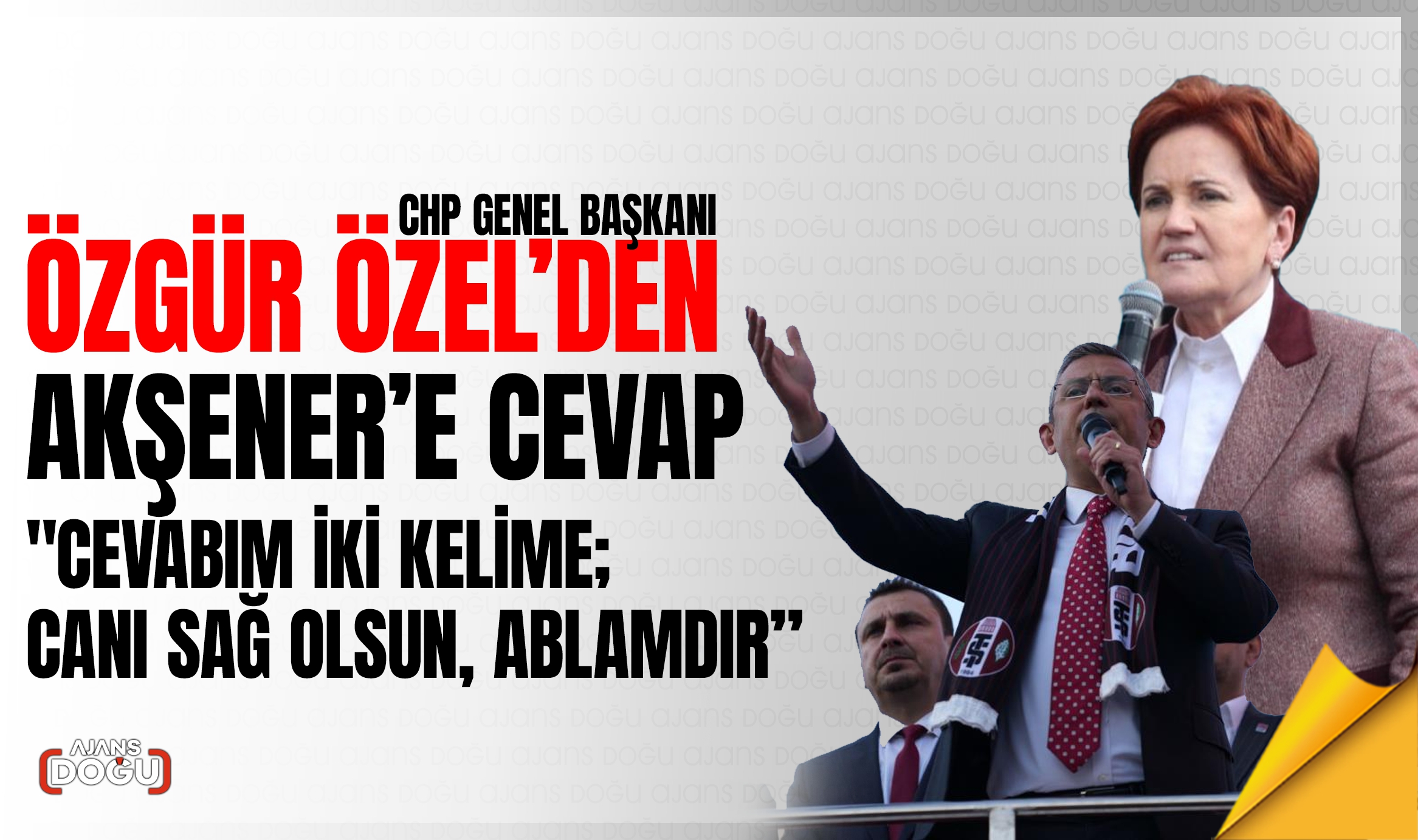CHP Genel Başkanı Özgür Özel, İYİ Parti Genel Başkanı Meral Akşener’e cevap vererek, “Abla diyeceğim ama dün ‘Abla mabla demeyin’ demiş. Cevabım iki kelime. Canı sağ olsun, ablamdır. Eski dosttan düşman olur mu?” dedi.