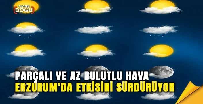 AJANS DOĞU – Meteoroloji 12. Bölge Müdürlüğü, Erzurum ve ilçelerinde hava durumuna ilişkin günlük raporunu yayımladı. Tahmine göre bölgede hava parçalı ve az bulutlu olacak.