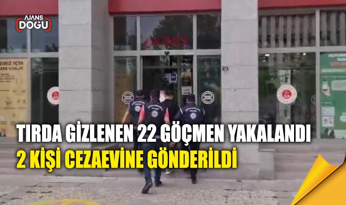 AJANS DOĞU – Göçmen Kaçakçılığıyla Mücadele ve Hudut Kapıları Şube Müdürlüğü ekiplerince, göçmen kaçakçılığına yönelik yapılan çalışmalar kapsamında saat 00.30 sıralarında, göçmen kaçakçılığı faaliyetlerinde bulunduğu değerlendirilen O.K. isimli şahsın idaresindeki tır durduruldu. Araçta yapılan kontrollerde dorse içerisinde 22 düzensiz göçmen olduğu tespit edildi. Düzensiz göçmenlerin işlemleri tamamlanarak Aşkale Geri Gönderme Merkezine teslim edildi. Ayrıca bahse konu tırda S.G. isimli şahsın da suça iştirak ettiği anlaşıldı ve 2 şüpheli şahıs ilgili şube müdürlüğünce işlemleri tamamlandıktan sonra sevk edildikleri adli makamlarca tutuklanarak cezaevine teslim edildi.